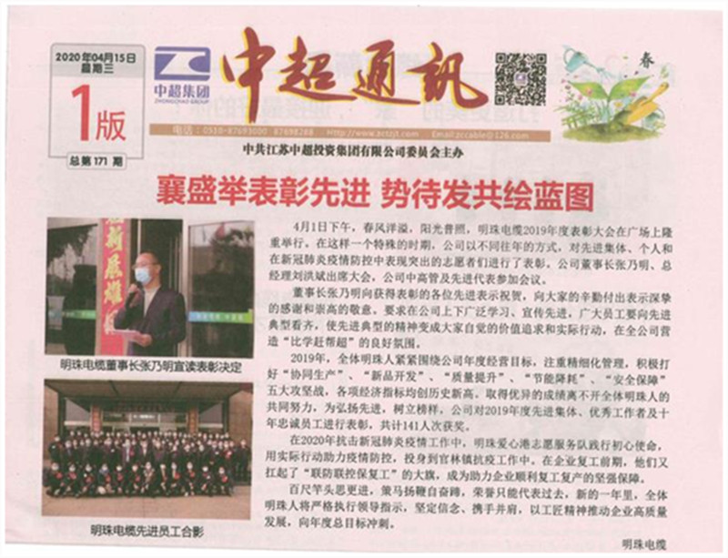 明珠电缆秉承"以人为本,以质取胜"的核心价值观,本着"不求规模大,但求品质佳"的发展理念,以诚载信、创新发展,朝着打造优秀线缆企业的目标而努力奋斗!