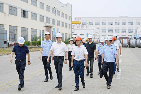 9月2日,宜兴市人民政府副市长张毅,市市场监管局党组书记、局长江峰及市商务局、市科技局等负责人组成检查组赴明珠公司交流,深入生产一线开展安全生产专项检查。官林镇党委副书记卢超、副镇长曹丽妮陪同检查,明珠电缆董事长张乃明、副总经理卢亚丽、生产副总监刘春青全程接待,并就企业安全生产工作作详细汇报。