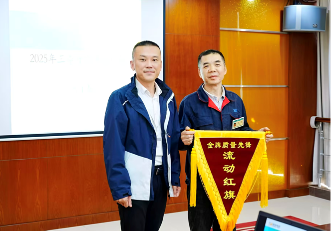 多年来,公司始终将“质量是人品,是企业的生命”作为质量宗旨,将产品品质视为企业稳健发展的根基。为进一步激发全员质量意识,推动质量管理水平持续升级,公司组织开展了季度质量管理综合评比活动。本次评比从内部人为质量事故、外部客户投诉情况,以及与去年同期质量控制水平对比等多个维度,进行全方位综合评定。经过严谨的数据核算与多部门的联合评审,低压车间凭借扎实的质量管控表现,荣获“金牌质量先锋”流动红旗!