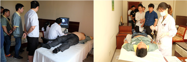 ▲腹部B超检测 ▲心电图检测