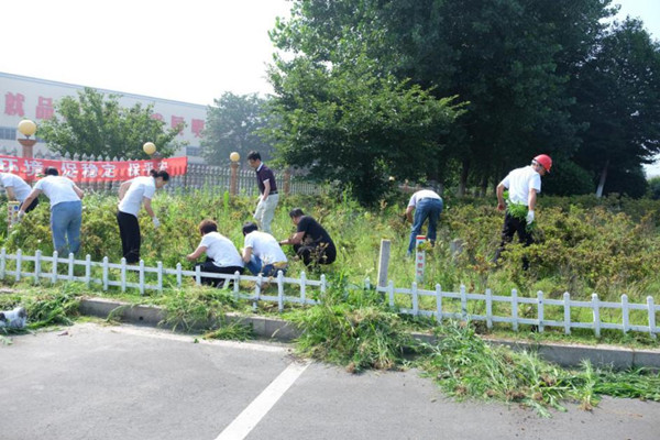 6月28日,在明珠党支部书记刘美娟同志的带领下,十多位党员同志手持锄头等工具,来到公司门前,清除马路两侧绿化带以及花坪中的杂草垃圾。