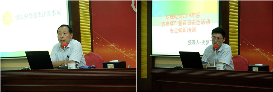 安监部部长周跃良、安全管理员史梦飞结合公司生产实际,为大家介绍了工作中常见的砸伤、烫伤以及逃生时的注意事项,并组织了逃生演练活动。