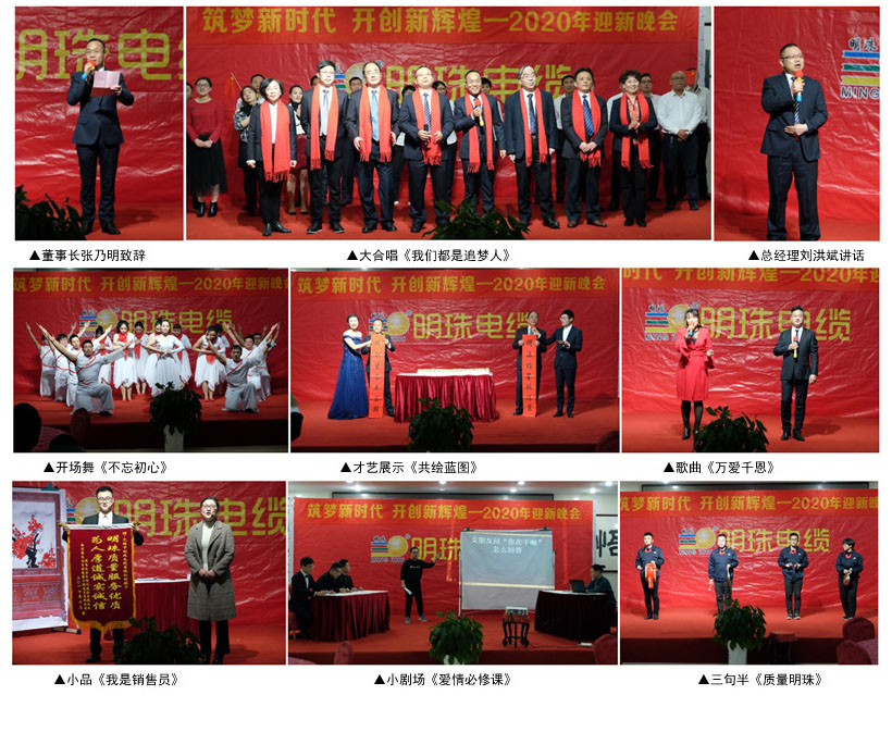 一元复始、山河壮丽;大幕初启,明珠璀璨。1月4日,公司隆重举办2020年迎新晚会。公司全体员工、销售精英、供应商合作伙伴以及集团领导欢聚一堂,共襄盛典。 整个晚会节目形式多样,包括舞蹈、书法、朗诵、小品以及音诗画等,并穿插着趣味小游戏,使得晚会现场气氛火爆、高潮迭起。另外设置的抽奖环节更是扣人心弦,将晚会推向了最高潮。在绚丽的舞台上,讴歌明珠人的风采,彰显明珠人奋发向上、坚定理想信念的决心;在欢歌笑语中,伴随着新一年美好的祝愿,明珠人在追梦路上且歌且行。