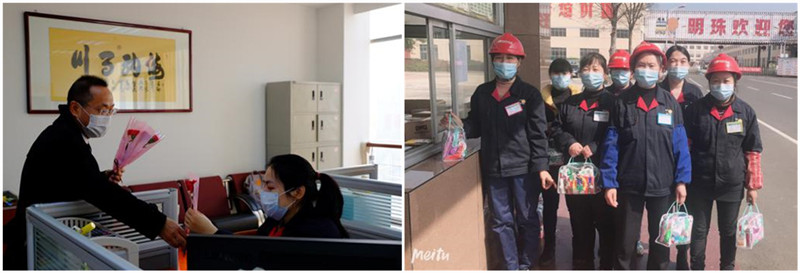 3月6日,在“三八”妇女节来临之际,公司提前给全体女职工准备了节日礼品和鲜花。一大早,董事长张乃明、生产副总陆洲、技术总工于金花分别为辛勤工作中的“女神”们送上了娇艳欲滴的鲜花,感谢大家的付出和努力,祝每一位“女神”芳华永驻,快乐相随,同时希望广大女职工继续发扬“明珠巾帼”不让须眉的精神,用眼界提升修养,用学识塑造内心,为社会和谐贡献力量,为企业发展添砖加瓦。