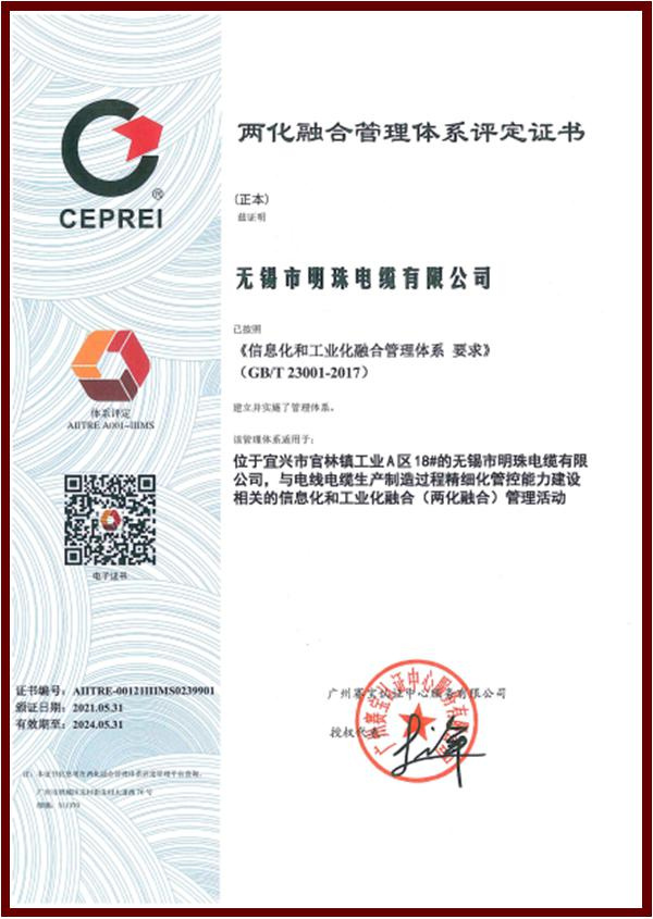 今年5月,明珠公司顺利获得两化融合管理体系评定证书,这一证书的取得,标志着公司在工业化和信息化“两化”深度融合的管理工作又迈向了新的高度。