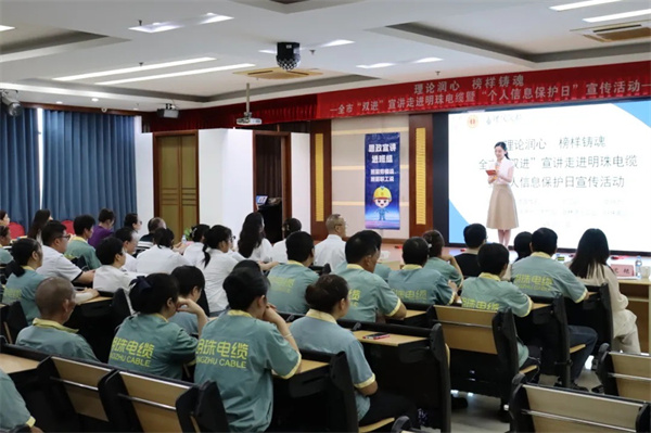 为激励和鼓舞全市广大职工进一步弘扬劳模精神、劳动精神、工匠精神,不断深化产业工人队伍建设改革,激励广大劳动者知重奋进、苦干实干,9月11日,市“理润陶都”新思想宣讲团、道德典型宣讲团、劳模工匠宣讲团联合,走进明珠电缆开展宣讲活动。