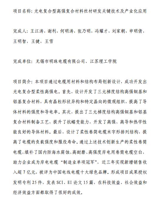 光电复合型高强复合材料丝材研发关键技术及产业化应用