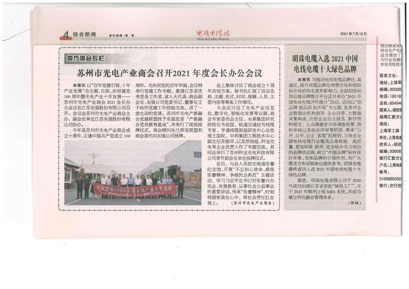 2021.7.16电线电缆报-明珠牌入选十大绿色品牌